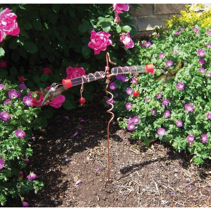 Stick in any flower pot and you can move your hummer feeding area anywhere in your yard. These are very popular.